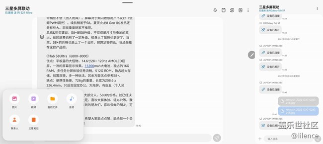 支持三星設(shè)備之間以及三星設(shè)備與Windows 電腦之間的文件傳輸、文字傳輸、同步剪貼板、同步通知、投屏等功能