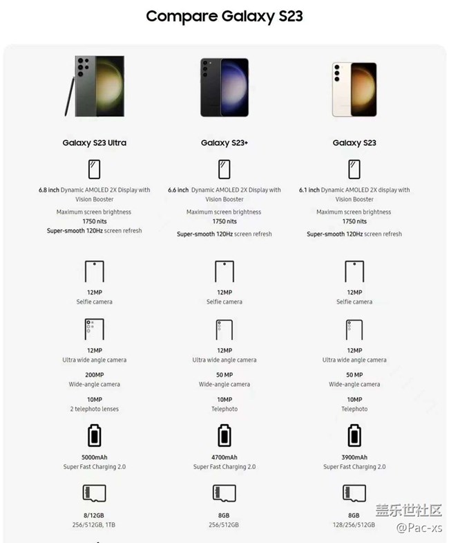 S23 Ultra可選12+256/512/1TB(國(guó)行不提供8GB選項(xiàng))