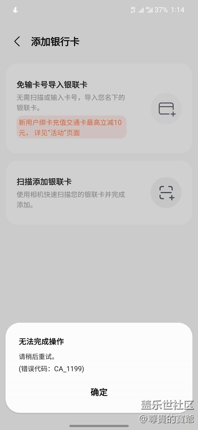 三星錢(qián)包不能綁定銀行卡,軟件卸載重裝也不行