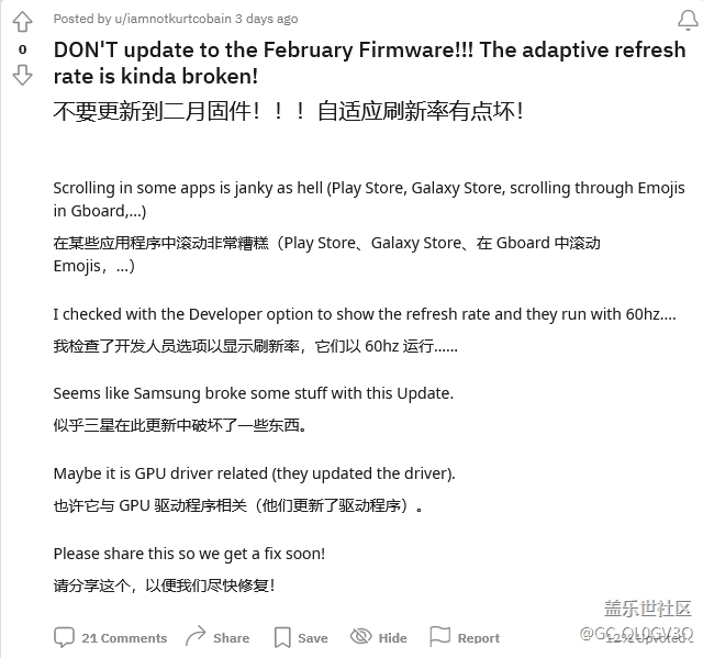 三星日前推送的 2023 年 2 月更新,導(dǎo)致 Galaxy S23、Galaxy S23 Plus 和 Galaxy S23 Ultra 的自適應(yīng)刷新率特性無法正常工作。