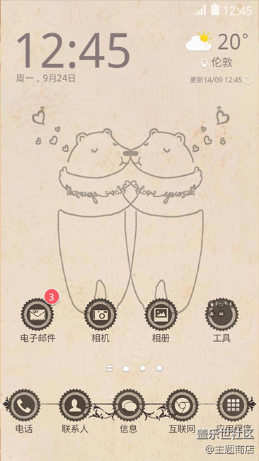 最近單身的不要抬頭仰望星空了(┬_┬)因為七夕了?。。〉皖^看看手機里的主題商店,下載個情侶主題,哼~天天情人節(jié)!