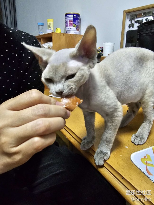 還有另外一個(gè)特點(diǎn),特別能吃,是一個(gè)小吃貨。什么貓零食貓罐頭,都吃很多。每天兩餐,如果不控制,一餐能吃上大概是普通成年人飯碗大小的一份肉,還會(huì)繼續(xù)吃。平常家人吃的面包,魚(yú),雞肉等都喜歡吃,一直問(wèn)你拿吃,永遠(yuǎn)吃不飽的樣子。