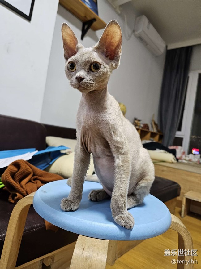 德文貓是丁香色的,身體小小一只,大大的耳朵,與家里人熟悉后特別粘人,晚上喜歡睡到你的腳邊,不喜歡睡貓窩。并且喜歡好動(dòng),在沒(méi)有陌生人情況下,平常是停不下來(lái)的。