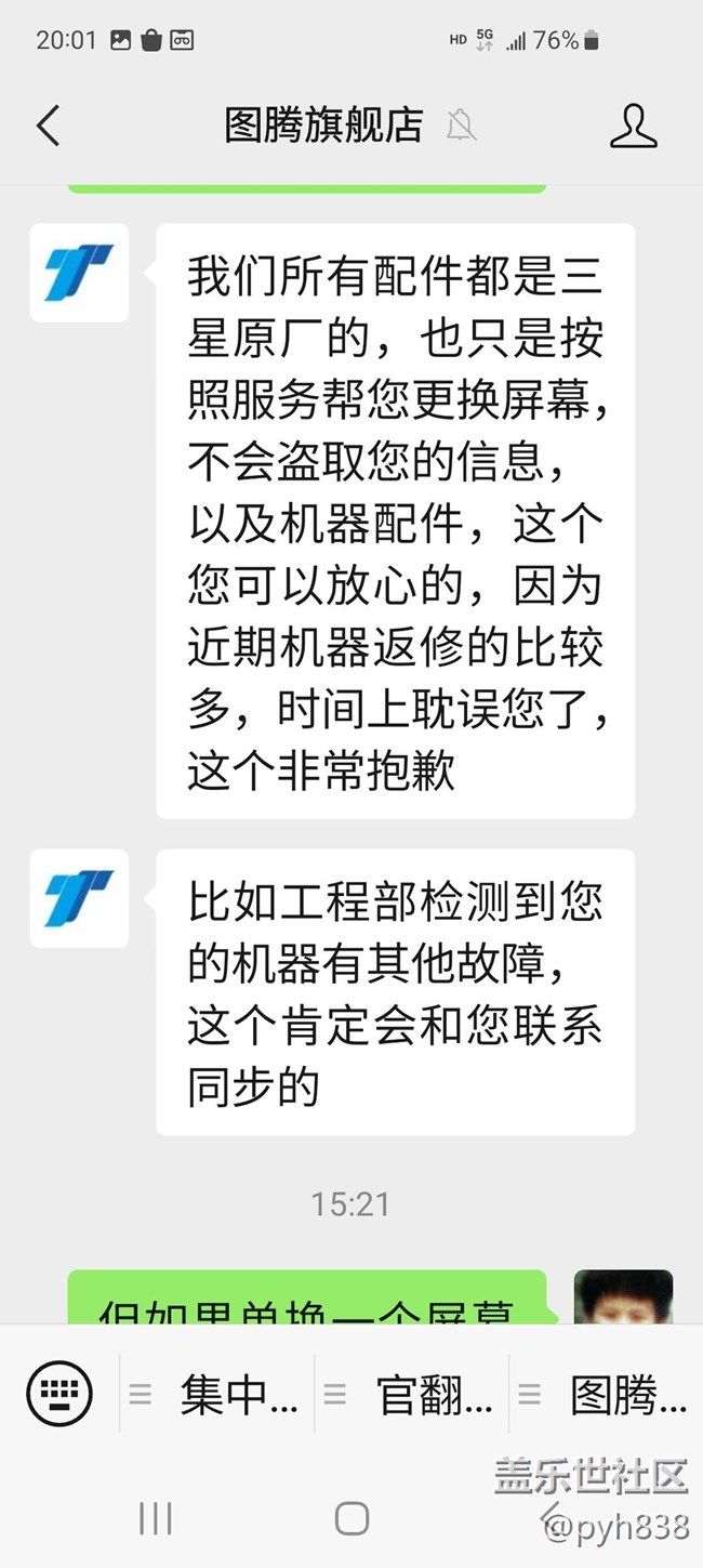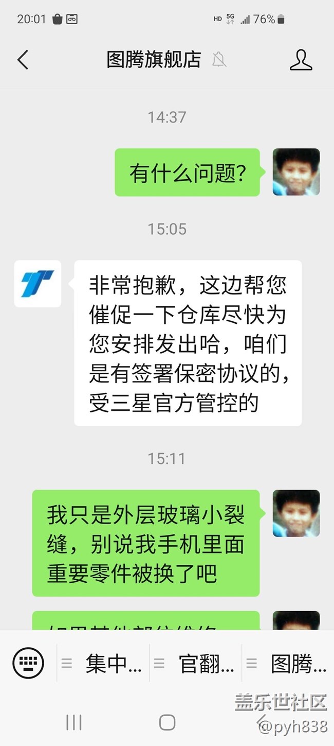 2月17日收到在京東購(gòu)買(mǎi)的S23U先行者,戴著官方原裝皮套,3月3日不小心摔了一下,屏幕左上角立刻裂了一條小裂縫,折騰了一番,5日將手機(jī)寄去廣州圖騰,順豐APP顯示6日上午已簽收,但圖騰一直沒(méi)聯(lián)系客戶,幾次聯(lián)系圖騰客服,但每次回復(fù)都不同,一時(shí)說(shuō)已維修好在測(cè)試,一時(shí)說(shuō)已在倉(cāng)庫(kù)等順豐上門(mén)收件,到9日上午,客服說(shuō)因?yàn)闄z測(cè)手機(jī)有問(wèn)題重新維修,問(wèn)他是什么問(wèn)題,客服這樣回復(fù):“非常抱歉,這邊幫您催促一下倉(cāng)庫(kù)盡快為您安排發(fā)出哈,咱們是有簽署保密協(xié)議的,受三星官方管控的”,再問(wèn)后將說(shuō)因?yàn)闄z測(cè)到攝像頭有灰所以重修,到下午再打客服電話02032068853時(shí),客服說(shuō)是檢測(cè)到S筆有故障,所以申請(qǐng)了新筆,要10日才到貨,再將手機(jī)和筆寄回給你,我就要去圖騰出具筆有問(wèn)題的報(bào)告后立即將機(jī)和壞筆寄回來(lái),然后我再找京東溝通,客服聽(tīng)到就聰明的回我,說(shuō)他立刻去工程部溝通再?gòu)?fù)我,過(guò)了幾分鐘回電說(shuō),不是筆有故障,是維修人員維修手機(jī)后忘記將我的筆塞回手機(jī),現(xiàn)在筆已經(jīng)不見(jiàn),要筆新筆回到再將手機(jī)寄回,我就要求當(dāng)天將沒(méi)筆的手機(jī)寄回,筆我自己想辦法,但客服說(shuō)向上級(jí)匯報(bào)再聯(lián)系我,但到今天近十點(diǎn)了還是沒(méi)人理我。究竟是廣州圖騰客服胡扯應(yīng)付客戶,還是S23U的S筆有故障,凡是維修的手機(jī)都偷偷更換新筆,圖騰明知道但因?yàn)楸C軈f(xié)議不敢如實(shí)回答?同是戴著官方原裝皮套,22U摔了一年都沒(méi)事,23U摔一次就裂了,難道23系列用的環(huán)保材料導(dǎo)致質(zhì)量有問(wèn)題?