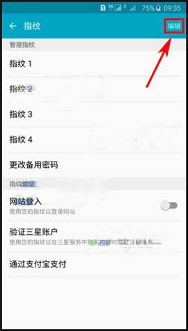 2)將已注冊(cè)指紋的手指放在【主頁(yè)】鍵上驗(yàn)證,進(jìn)入后點(diǎn)擊【編輯】。