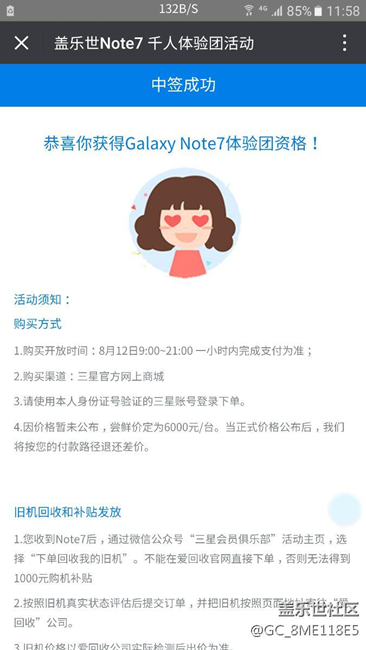 剛買note5不久,暫時不想換機。想不到中了note7體驗資格。請聯(lián)系我。