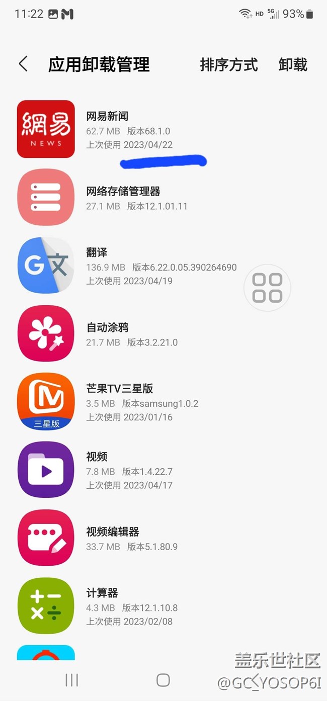 在三星應(yīng)用商店內(nèi)應(yīng)用卸載管理中顯示的時間錯誤,今天時間2023/04/19