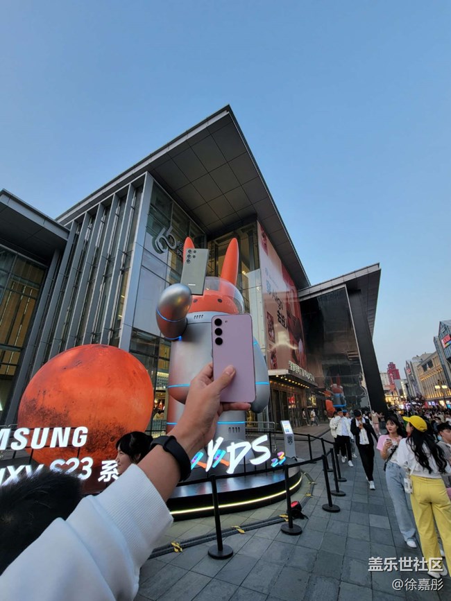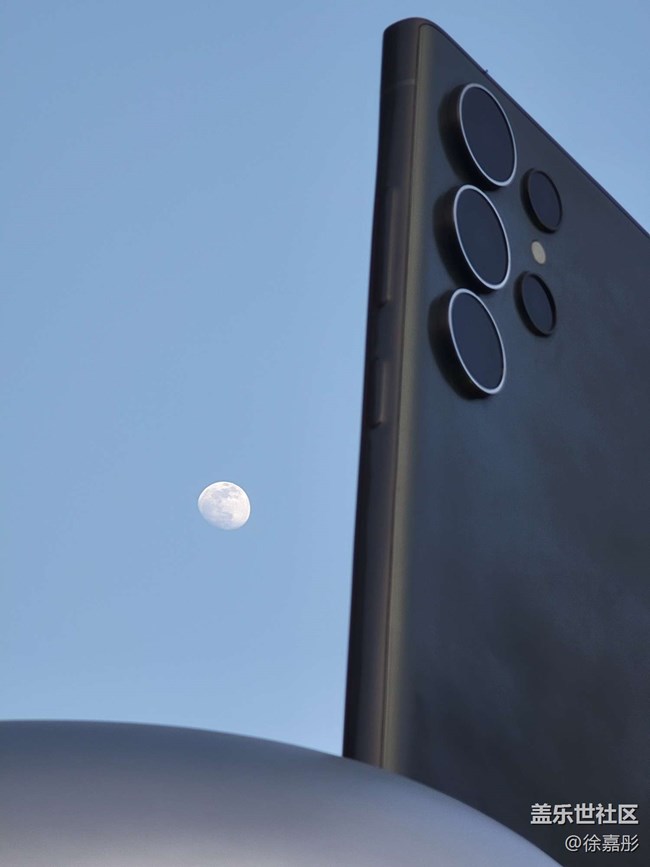 然后我又拍了幾張創(chuàng)意的照片,首先當(dāng)天正好天晴可以看見月亮,用s23ultra的潛望鏡頭拍攝了手機(jī)模型和月亮的合照