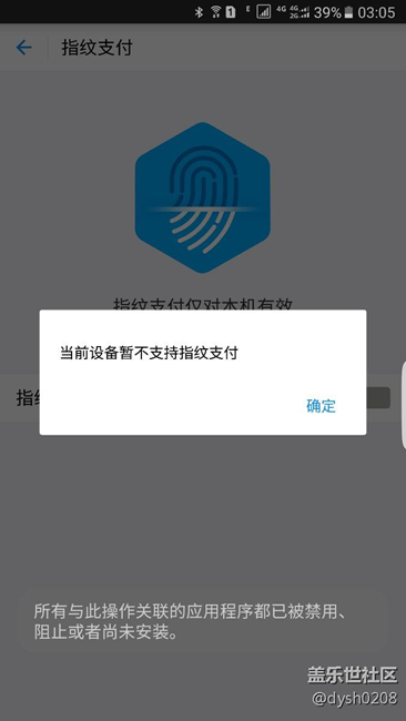 如圖,只要打開支付寶就提示什么程序沒裝,根本就進(jìn)不了指紋設(shè)置。原來一直好用的,而且沒有root,國行版本,三星pay指紋正常,指紋解鎖正常!現(xiàn)在試了網(wǎng)上各種辦法都不行,不想刷機啊!不知道被禁用了什么程序?