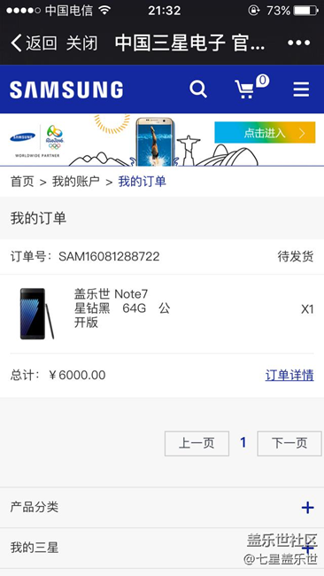 先說(shuō)個(gè)小插曲吧,購(gòu)機(jī)當(dāng)天規(guī)定的時(shí)間是9:00-21:00,可是因?yàn)楣ぷ鞯脑颍氐郊业臅r(shí)候已經(jīng)8:50多了,于是第一時(shí)間打開(kāi)電腦去登陸,可是半天三星賬號(hào)登不上去,看著時(shí)間即將臨近,心里越來(lái)越著急。一直到9:00了,還沒(méi)弄好,心情一下失落到了谷底。想著就這么擦肩而過(guò)了。于是就來(lái)到論壇轉(zhuǎn),看看大家的情況,誰(shuí)知道當(dāng)天晚上官方就開(kāi)放了候補(bǔ)名額購(gòu)買(mǎi),抱著僥幸的心理,我也登陸官網(wǎng)去購(gòu)買(mǎi),沒(méi)想到購(gòu)買(mǎi)成功了!心情超級(jí)激動(dòng)?。?/span>