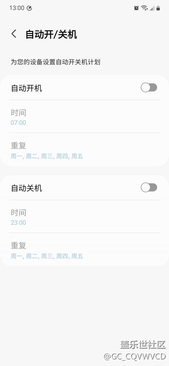 設(shè)置中的自動開關(guān)機是關(guān)閉的。