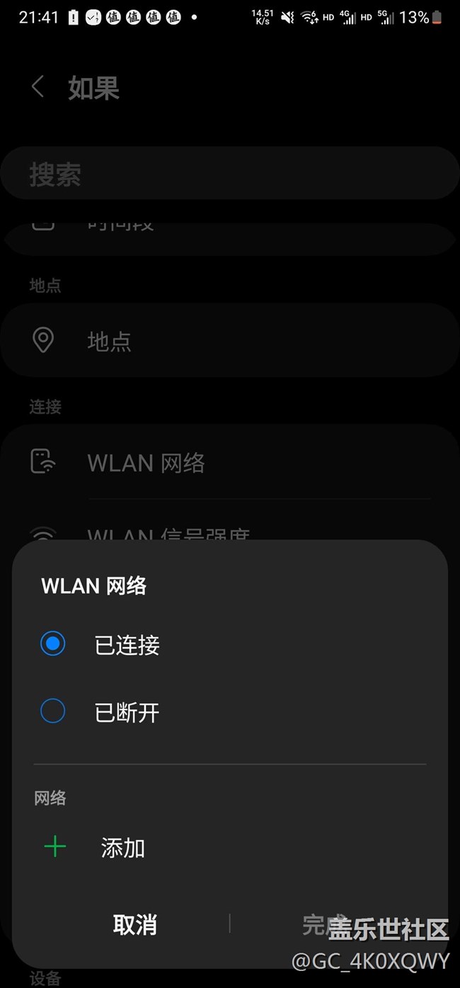 自動(dòng)化WiFi狀態(tài)中添加鏈接任何WiFi后選 圖片