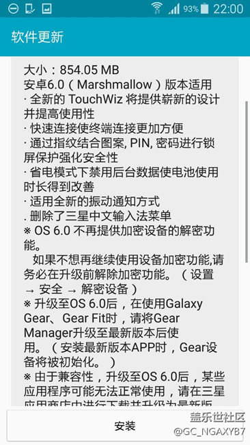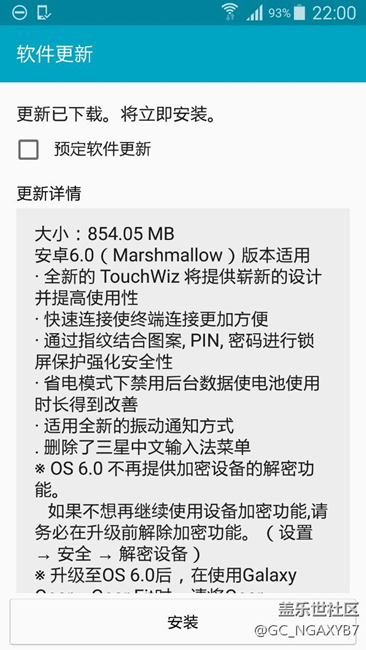今日收到了安卓6.0的更新推送,854.05MB