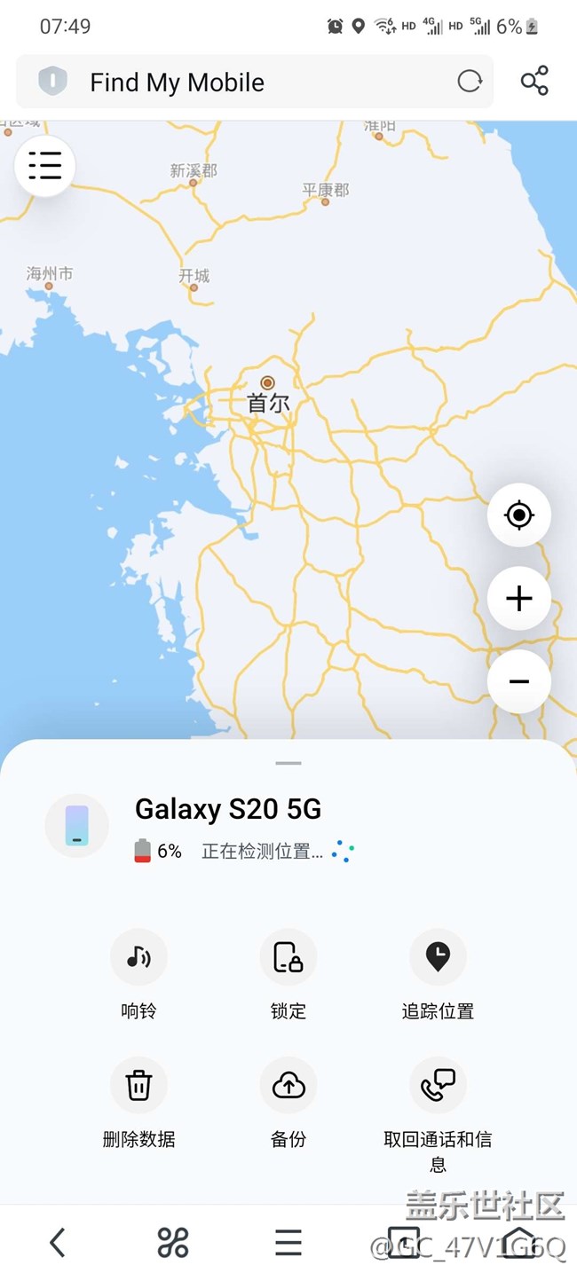 昨晚回家沒找到手機(jī),用別的三星手機(jī)查詢一下沒反應(yīng),之后找到手機(jī)后提醒我用了查找手機(jī)了,登陸后定不了位,在首爾