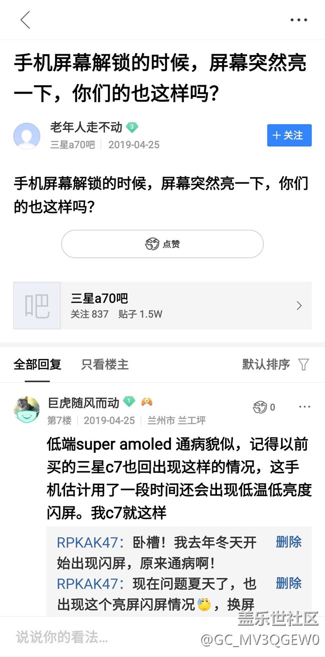a70s屏幕低溫亮屏息屏?xí)霈F(xiàn)屏閃。 圖片