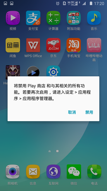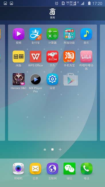 2、禁用手機自帶軟件。當(dāng)然,有時候我們可能長按不會出現(xiàn)卸載選項,而會出現(xiàn)禁用選項,這時只需拖至禁用欄,這個app再也不會啟動和見到了,除非設(shè)置為再次啟用。