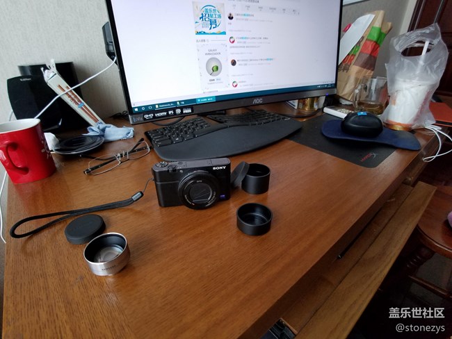 然后是廣角。請(qǐng)忽略桌面……可視角度驟增,以這個(gè)畫面來(lái)看畸變似乎不是很嚴(yán)重。邊角畫質(zhì)有一定損失,不過(guò)比長(zhǎng)焦頭強(qiáng)。