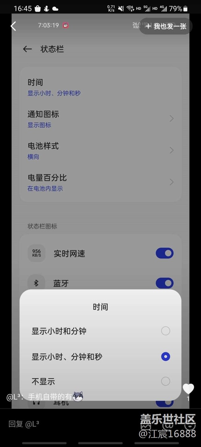 帖子名稱 頂部狀態(tài)欄時間顯示秒的問題