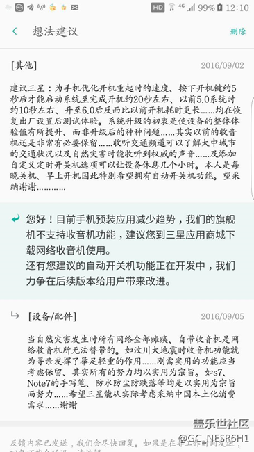 在遭遇地震如512及洪水泥石流等特大自然災(zāi)害時(shí)、所有網(wǎng)絡(luò)全部癱瘓……收音機(jī)的尋親為災(zāi)區(qū)發(fā)揮了無可比擬的作用……此為剛性需求……在如今人人擁有手機(jī)便攜的電子設(shè)備不應(yīng)舍棄此功能、有備無患無備后患……所有的努力為了需求而需求皆以實(shí)用現(xiàn)實(shí)為宗旨……當(dāng)脫離了實(shí)用一切都變得空洞……象S7系、Note7的手寫筆功能、防水防塵防跌落保護(hù)套移動(dòng)電源等等…………均是以實(shí)用為宗旨而努力著值得贊揚(yáng)……
