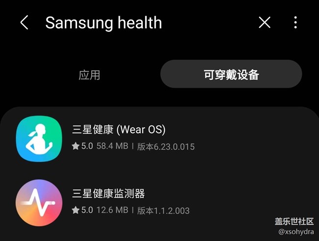 2. 搜索關(guān)鍵字 Samsung Health 并選擇#可穿戴設(shè)備#