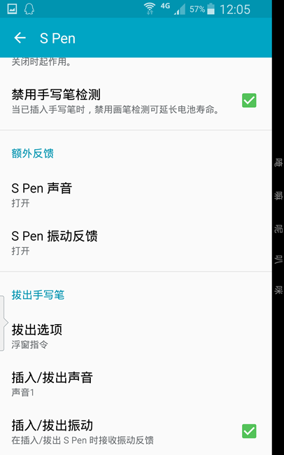s pen的設(shè)置如下圖,應(yīng)該沒(méi)有問(wèn)題,可是在開機(jī)幾天后就不顯示了,只能重啟手機(jī),之后又正常,過(guò)幾天又不顯示。哪位知道,望告知!感謝?。。ū緳C(jī)安裝了MY KNOX 是不是這個(gè)有沖突呢?沒(méi)安裝之前沒(méi)事)