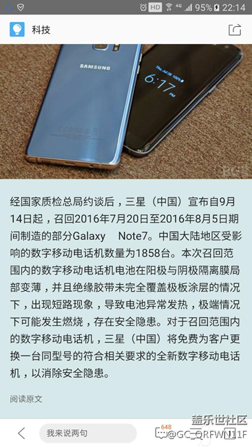 三 星開(kāi)始打臉了,說(shuō)國(guó)行note7安全,那為何要召回1800多部?為啥不是全部?看圖