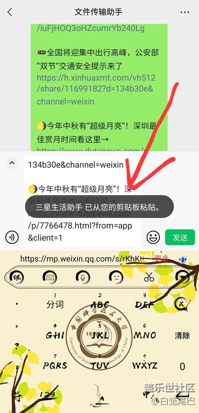 三星生活助手在復(fù)制黏貼的時(shí)候,提示會(huì)遮擋部分文字,有點(diǎn)影響操作,尤其是在微信場(chǎng)景。希望可以優(yōu)化一下,