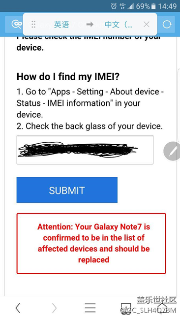 我9月2日在三星某專賣店買的機器,后來上周通過論壇的發(fā)帖里的鏈接查出我的手機隱患,也聯系了銷售,銷售按照我給他的鏈接查了與我一樣當天賣出的所有note7查詢結構都是綠色的,就我是紅色。于是,我電話去了售后要求換機,但是售后到今天如機器人一樣的回答,說9月1日賣出的機器都是沒問題的,不在換機范圍,這到底是什么意思