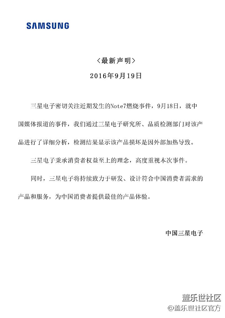 帖子名稱: 三星電子 9月19日 最新聲明
