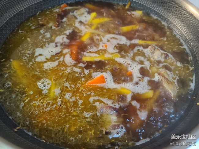4. 胡蘿卜和黃蘿卜一定炒軟,加熱水末過食材,中火燉20分鐘