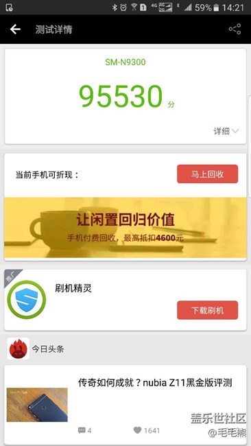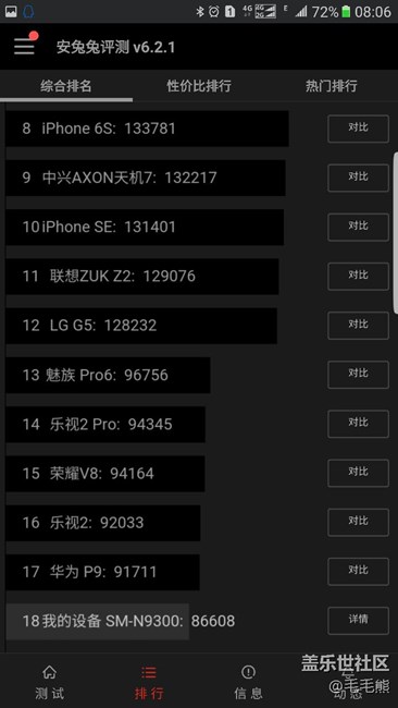帖子標(biāo)題: 升級(jí)前和升級(jí)后的安兔兔跑分,掉了很多。