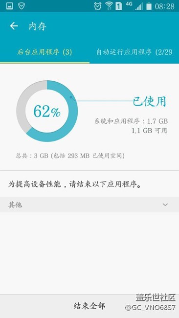 這個(gè)是雙清后“智能管理器”里的內(nèi)容,經(jīng)過(guò)設(shè)置,自動(dòng)運(yùn)行的軟件,我設(shè)定為2個(gè),分別是“微信”和“手機(jī)管家”。而且我安裝的軟件也并不是很多,稍后上圖證明。而內(nèi)存的占用率依舊是很高的,因?yàn)榘惭b的軟件不是太多,所以機(jī)身內(nèi)存(16g的容量?jī)?nèi)存)還有7個(gè)G的容量,但后續(xù)使用中會(huì)不會(huì)象雙清前那樣,越用越少,就要用著才能知道了!