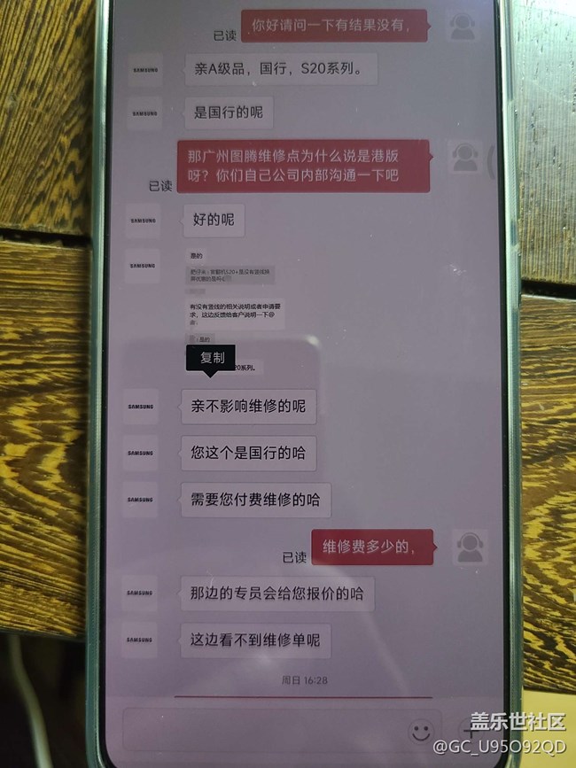 投訴了三星官網(wǎng)客服,得到了回應(yīng),然而手機(jī)寄到了廣州圖騰維修中心 客服小姐姐回復(fù)了,經(jīng)過專業(yè)的軟件測試出你的手機(jī)是港版的不支持免費(fèi)換屏服務(wù)(撒謊意思要自己自費(fèi)維修),明明三星官網(wǎng)買的國行怎會(huì)被測試出是港版,然后問一下?lián)Q屏費(fèi)用報(bào)價(jià)一千五百多,好樣的一副高高在上的姿態(tài),兩千來塊錢我買一臺(tái)全新小米手機(jī)不香?腦殼進(jìn)水了才會(huì)修這破手機(jī),用了十多年三星手機(jī)的老用戶徹底對這個(gè)品牌失望了,已經(jīng)脫坑了 昨天買回來的小米手機(jī)2k屏驍龍8+處理器甭提有多香,再也不來蓋樂世了此貼為證 再見!
