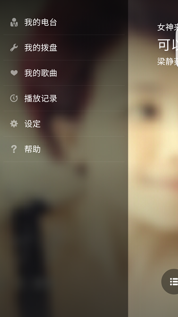 播放界面的左側為菜單,分為:我的電臺、我的撥盤、我的歌曲、播放記錄等,完全可以根據(jù)個人喜好進行自主設定。