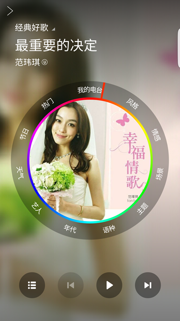三星牛奶音樂獨創(chuàng)了炫酷的唱片形狀撥盤,圓圈外側撥盤可以快速選擇不同的電臺頻道,進行快速換臺;內(nèi)側撥盤可以選擇頻道內(nèi)的細分音樂,進行慢速調(diào)臺,讓我們找回了旋鈕的感覺。