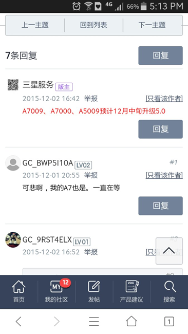 A5000公開(kāi)版你們說(shuō)12月初更新,逗12月了,還不更新,那個(gè)現(xiàn)行服務(wù)版主說(shuō),中旬更新A7000和A7009和A5009,尼瑪?shù)腁5000呢,說(shuō)12月初更新,草尼瑪?shù)?,你們做到?jīng)]有,A5000是備用機(jī)嗎,是淘汰的備用機(jī)嗎,每天就回復(fù)一些沒(méi)用的,三星養(yǎng)了一群吃屎的狗。