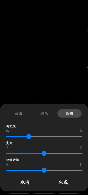 可以對其的透明度、寬度、持續(xù)時間做出調(diào)整