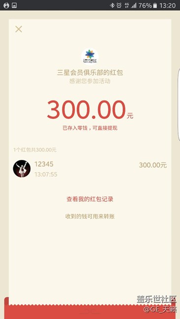300元購(gòu)機(jī)紅包到賬 圖片