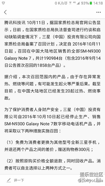 三星中國已經(jīng)公告召回全部note7和召回方案,大家怎么看