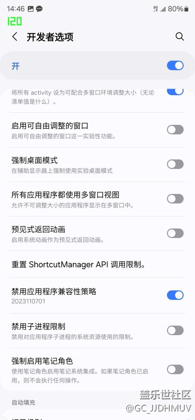 S23u      1月10日半夜自動升級了一個補丁以后,微信跟閑魚就被鎖定在了低幀率60hz,其他的APP比如抖音等等都是120,嘗試了所有解決方法都不管用,包括在開發(fā)者選項里打開了禁用應用程序兼容策略,有沒有小伙伴有辦法解決的,指點一二,謝謝