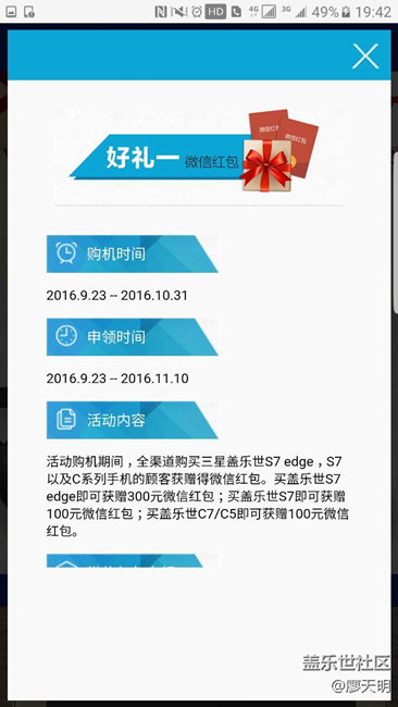 活動(dòng)說:10月31日前,全渠道購買的S7 edge都能贈(zèng)送300元微信紅包。那么是不是只要是國行,在手機(jī)賣場(chǎng)購買的也行?