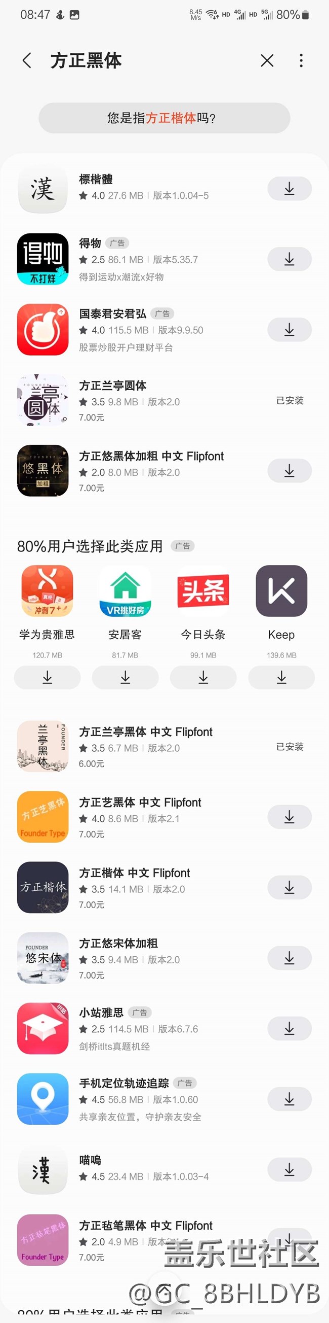 23年初入了s23+,當(dāng)時(shí)發(fā)現(xiàn)字體里搜不到標(biāo)準(zhǔn)黑體了,然后一直用系統(tǒng)默認(rèn)字體。我主要是覺得默認(rèn)字體太細(xì)了,有些app評論區(qū)字體太細(xì),比如b站,覺得很不舒服。我知道可以選字體加粗,但是這又會(huì)導(dǎo)致有些區(qū)域字體很粗,看著也不爽。所以用默認(rèn)字體忍了一年也習(xí)慣了。