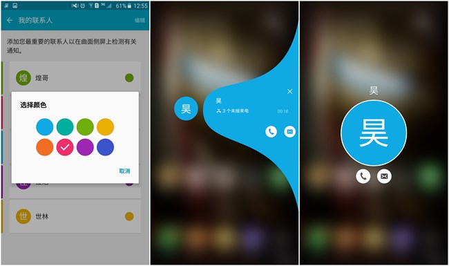 更酷炫的是當(dāng)手機反扣在桌面上的時候如果常聯(lián)系人來電就會在邊緣出現(xiàn)相應(yīng)顏色的閃光,非常好看,我比較喜歡這個功能。(有些測評媒體說:“那么漂亮的屏幕,誰愿意倒扣在桌面上?”我想說:“給你這個功能不代表你要每時每刻都用上它,只是讓你在需要的時候能給你方便,那不就行了么?S6e+還有心率感應(yīng)功能,也不見得要一直把手指放在感應(yīng)器上面吧?”)