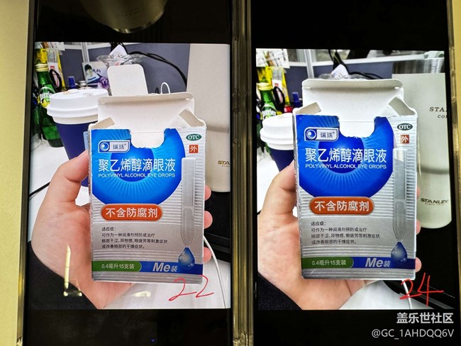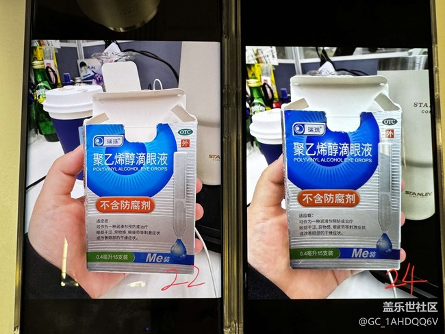 相機(jī)的設(shè)置,我全都對比了22U的,一模一樣的設(shè)置。這兩個(gè)對比照片是借同事的蘋果拍的,肉眼看兩部手機(jī)的差距更明顯。把22U的照片S互傳到24U,也是照片看著檔次掉了好多??傊褪呛苁?。