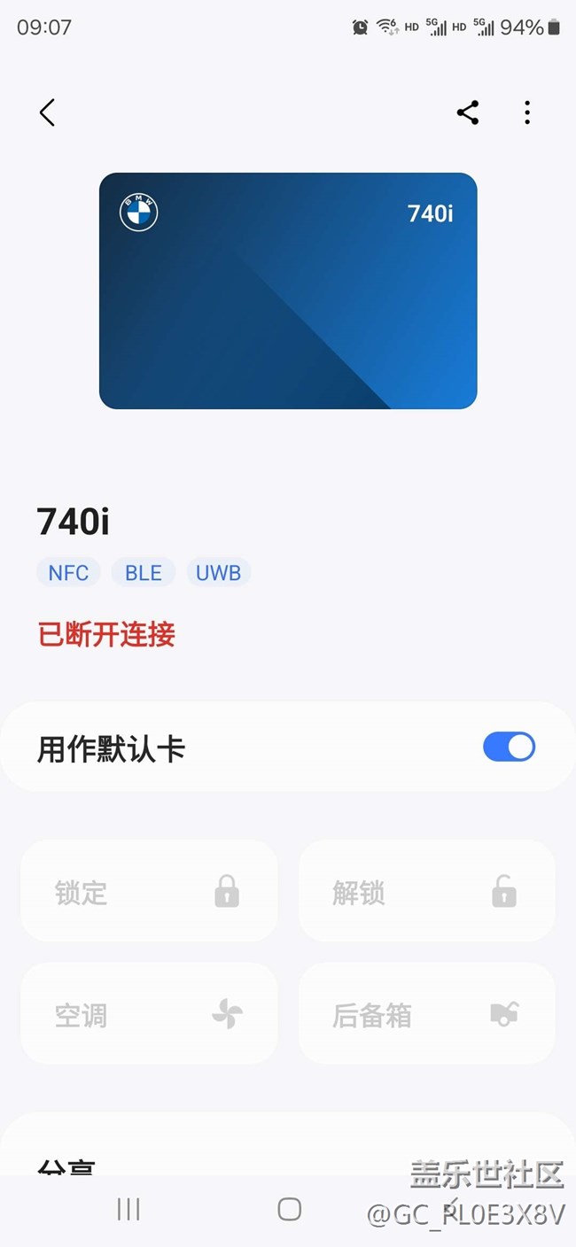 三星寶馬數(shù)字鑰匙。 圖片