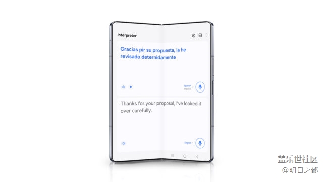 翻譯器模式可以讓用戶與不會(huì)說自己語言的人交談。此模式在常規(guī)手機(jī)、折疊屏手機(jī)和平板電腦上以分屏模式打開。Galaxy設(shè)備用戶說的話會(huì)被轉(zhuǎn)錄并轉(zhuǎn)換成任何其他選擇的語言。翻譯后的文本然后轉(zhuǎn)換為語音,以便對(duì)方可以用他們的語言聽到。同樣,實(shí)時(shí)翻譯功能可以在語音通話過程中實(shí)時(shí)翻譯語言,該功能也適用于一些支持的聊天應(yīng)用程序,例如WhatsApp。