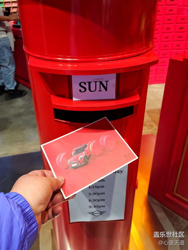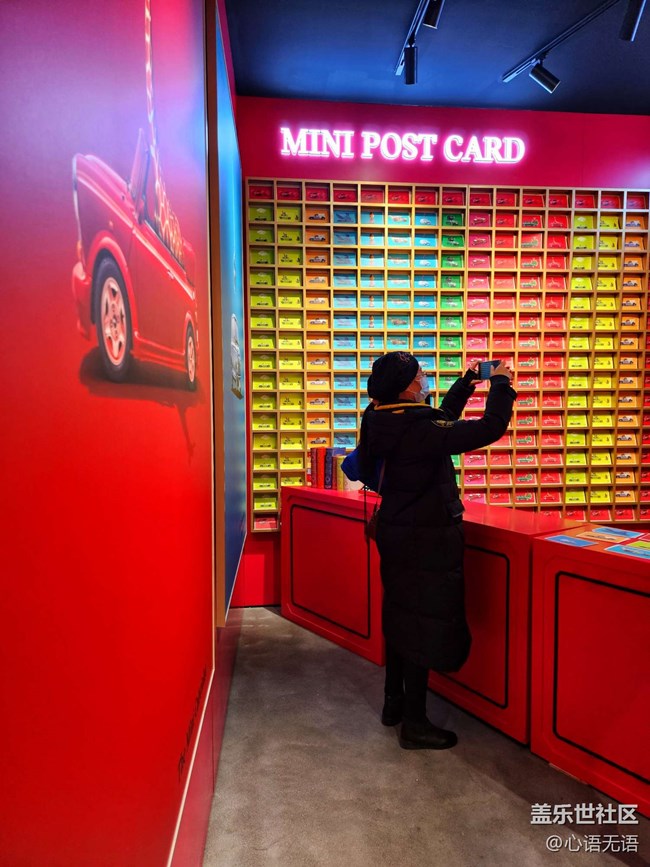 在mini汽車和郵局的展區(qū),除了有可以供游客拍照的MINI車,也可以拍照發(fā)小紅書領(lǐng)明信片,并且可以免費(fèi)郵寄到全國(guó)各地。