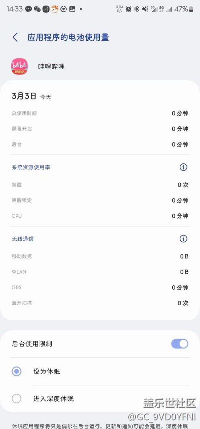升級(jí)oneui6.0后,嗶哩嗶哩未在后臺(tái)打開卻耗電嚴(yán)重 圖片