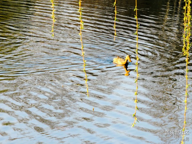 春回大地,萬(wàn)物復(fù)蘇。氣溫回暖,楊柳吐新。鴨兒歡快的在水里游來(lái)游去,春天來(lái)了