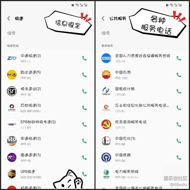 3??通話黃頁里面包含信息??巨大,各種聯(lián)系方式,不需要去百度,直接可以找到→可參考圖6圖7(以快遞和公共服務為例)